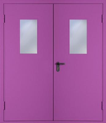 Двупольная противопожарная дверь со стеклом EI 60 с порошковым напылением (RAL 2012)