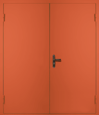 В двупольных металлических технических дверях одна из створок всегда снабжается двумя фиксирующими элементами. Если нужно сделать проход шире, штыри вынимаются.