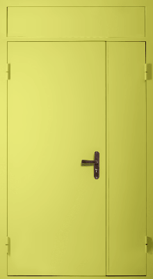Если ширина и высота проема нестандартные, удобнее всего установить полуторные технические двери с глухим полотном и фрамугой. Статичная створка оснащена петлями и вертикальными штырями, что позволяет открывать ее в случае необходимости.